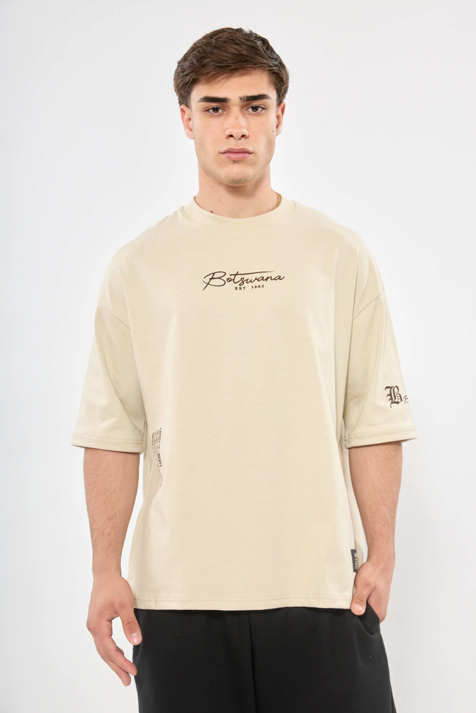 Remera Osaka Oversize de Algodón 15/1 Descubrí esta remera super canchera con estampado en el frente y manga, ideal para un look urbano y cómodo. Confeccionada en una tela de algodón 15/1, ofrece una textura suave y resistente que garantiza confort todo el día.