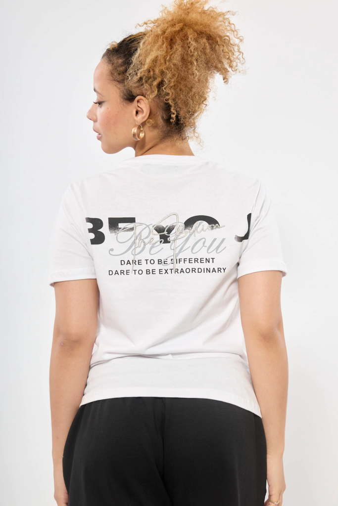 Remera Be You: la combinación perfecta entre comodidad y estilo. Esta remera de algodón premium destaca por su diseño estampado y bordado en la espalda, aportando un toque moderno y exclusivo. Disponible en tres colores ideales para cualquier ocasión.