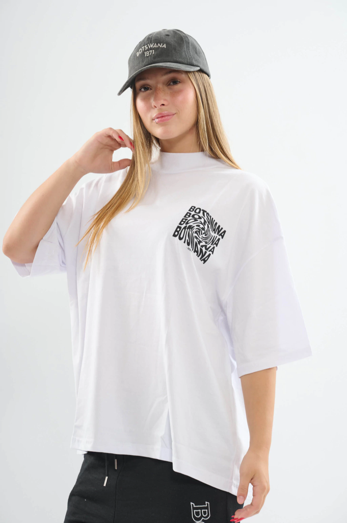 La Remera BOT es una prenda oversized de cuello alto, confeccionada en algodón peinado 24/1, que garantiza suavidad y durabilidad. Cuenta con una elegante estampa en el frente y en la espalda, aportando un diseño moderno y distintivo.