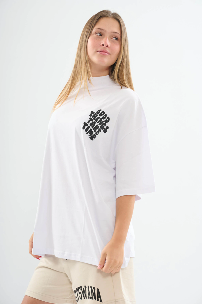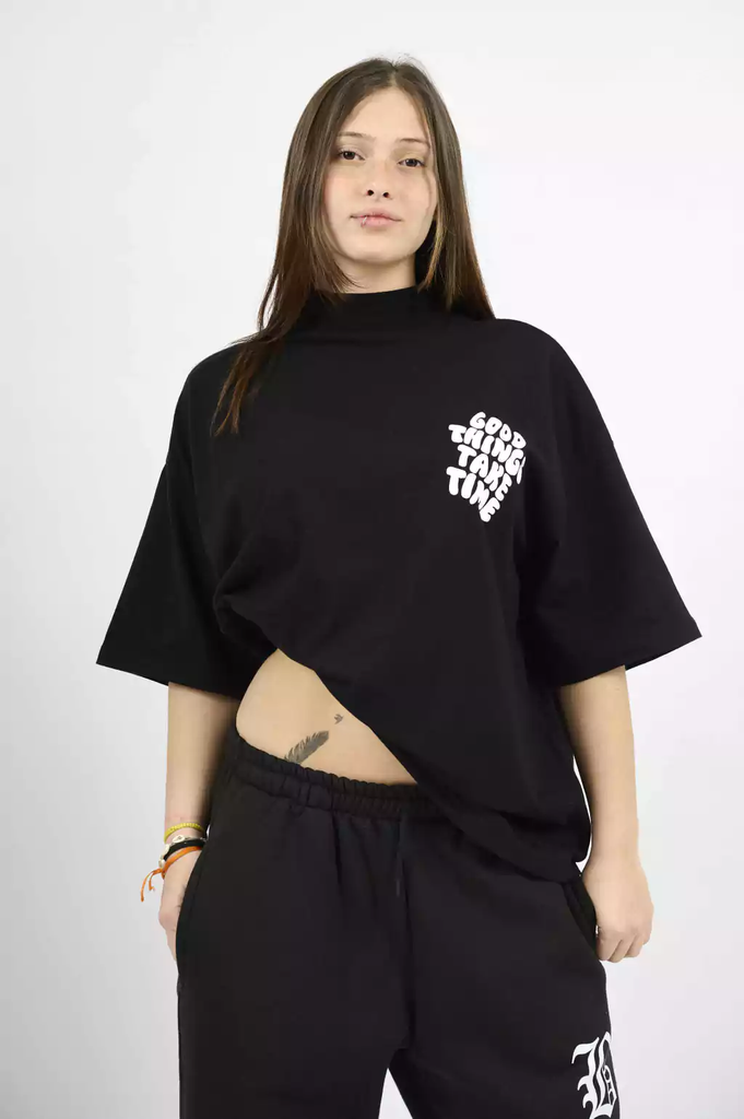 Descubrí la Remera Good, una prenda oversized de algodón peinado 24/1 que combina suavidad y estilo. Su diseño de cuello alto aporta un toque moderno y cómodo, ideal para cualquier ocasión.